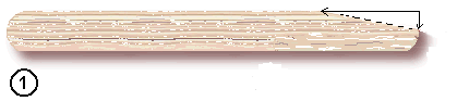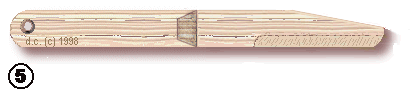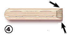 Looking at figure #4, cut a bevel edge on the cut end of each of the two sticks from step